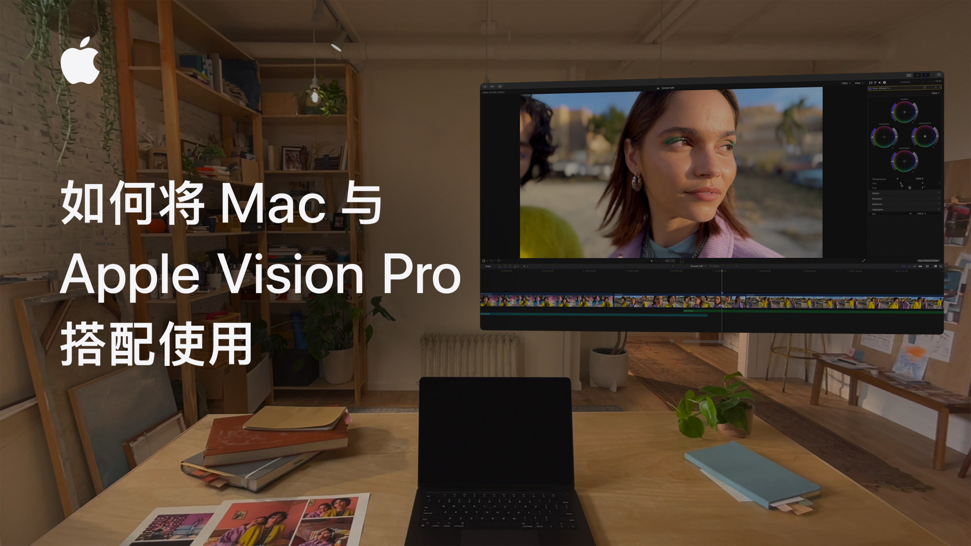 借助 Mac 虚拟显示器,可以将 Apple Vision Pro 用作 Mac 的专用便携式显示器。